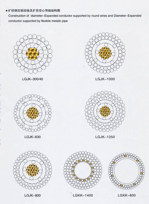 圆线同心绞架空导线 扩径钢芯铝绞线 扩径空心导线Round wire concentric lay overhead electrical strander conductorsDiameter-ex…