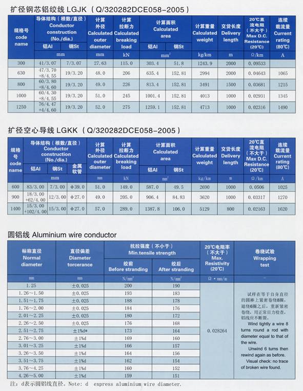 圆线同心绞架空导线•扩径钢芯铝绞线•扩径空心导线