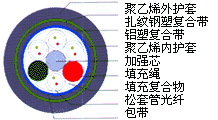 产品型号: GYSTA53也叫(GYTA53) 光纤松套管 金属中芯加强件 缆芯填充油膏 双涂料铝带粘结PE内护套 轧纹钢带粘结PE外护套 | |||